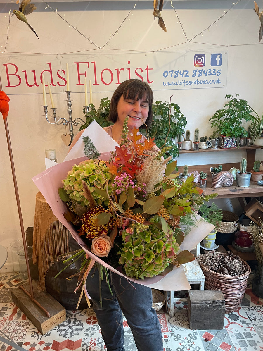 I'm Helen, owner of Bits and Buds florist in Leighton Buzzard. It's not your conventional shop and operates as a working studio most of the time with opening hours for walk in sales 10-2 Wednesday to Saturday. Our online shop is 24/7 with deliveries across Bedfordshire Monday to Saturday and you can always give me a call or email to talk flowers too.