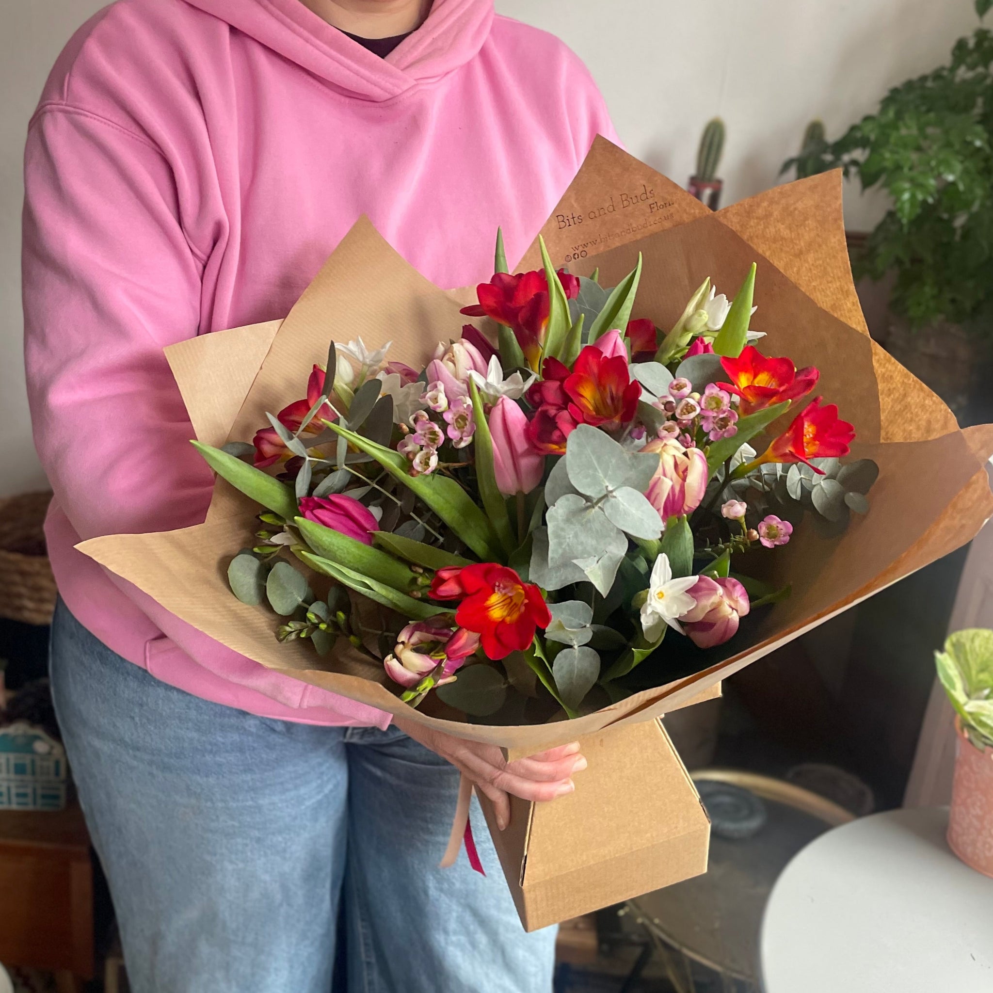 British Tulips in romantic pink tones will make them blush with joy. There's somethin very special about the first spring flowers of the season and our spring bouquets are always a favourite.